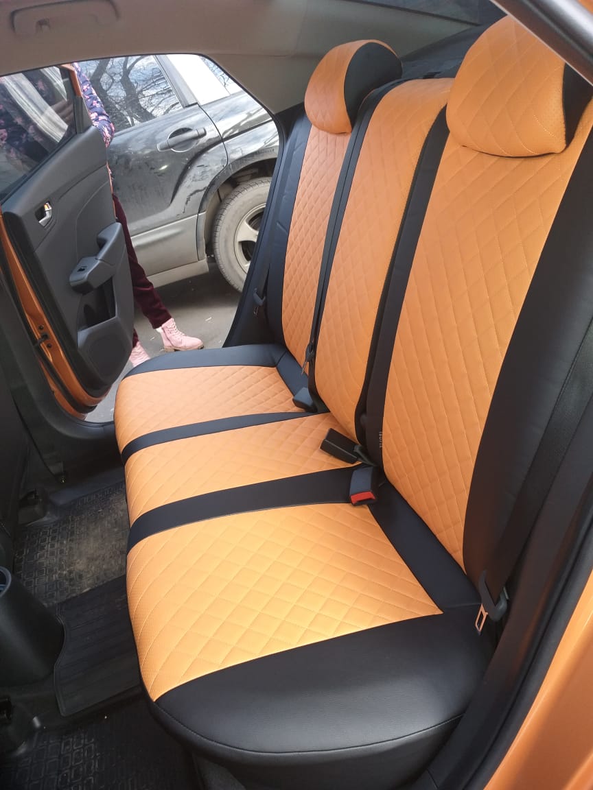 Комплектность чехлов: спинки передние - 2, сиденья передние - 2, спинка задняя сплошная - 1, сиденье заднее сплошное - 1, подголовники передние - 2.